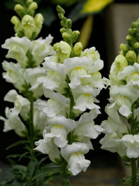 Antirrhinum majus Snappy F1    Карликовый гибрид, достигающий высоты 15 – 20 см и такого же диаметра. Преимуществом серии является очень богатая цветовая гамма. Очаровательные мелкие цветки насыщенного розового цвета собраны в кистевидное соцветие высотой 8 – 10 см. Цветение наступает в очень ранние сроки и длится с июня до заморозков. Растение будет идеально смотреться в горшках, декоративных вазах, подвесных корзинах, контейнерах. Используется для украшения балконов и клумб.